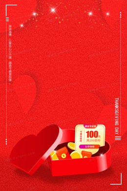 红色大气剪纸风感恩钜惠感恩节爱心礼盒背景