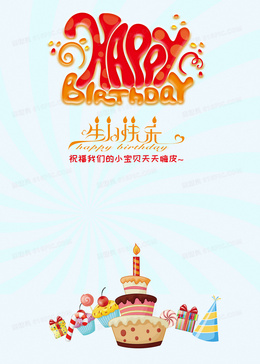 蓝色蛋糕梦幻生日快乐H5背景素材
