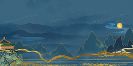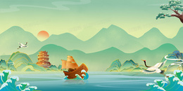 中国风蓝大气国潮风仙鹤海浪祥云国潮背景