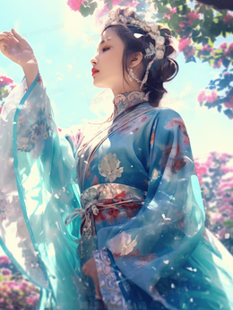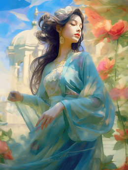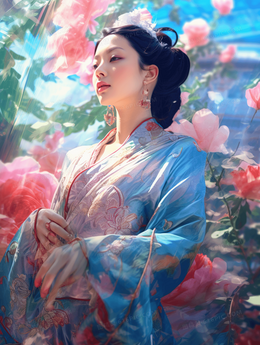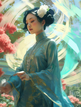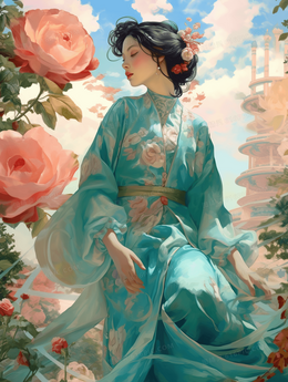 彩色传统古风中国风国潮女孩插画