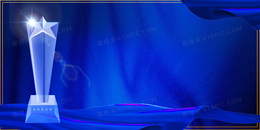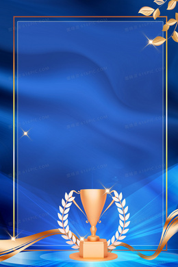 蓝色丝绸质感排行榜奖杯蓝金背景