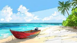 > 立夏海边停放的小船插画