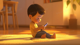 坐地上玩手机的小男孩插画