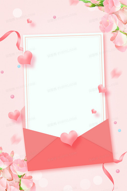 粉色浪漫情人节鲜花情书背景