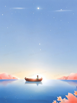 插画风格唯美治愈创意小船背景