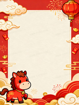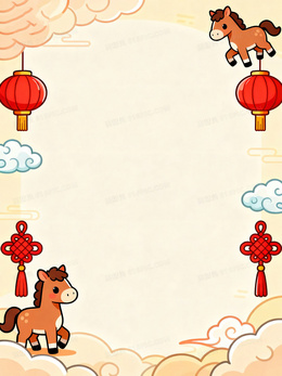 可爱卡通马年春节背景