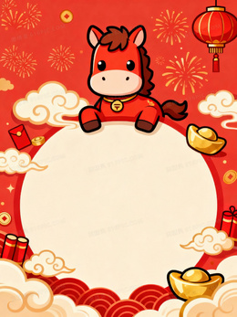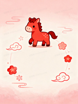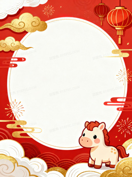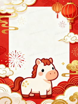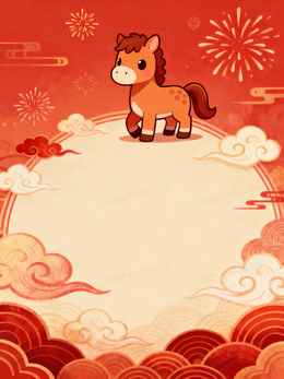可爱卡通马年春节背景图