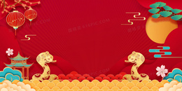 蛇年红色喜庆剪纸风蛇年剪纸2025新年背景
