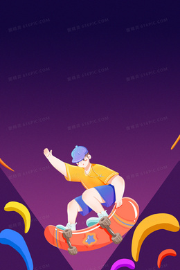 卡通插画风滑板合成背景