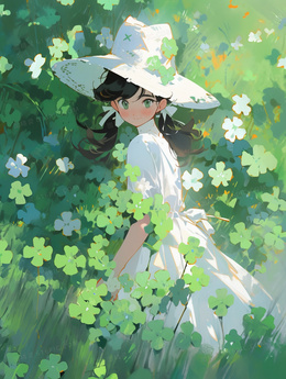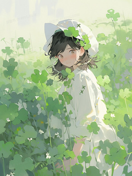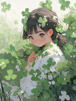 四叶草中的漂亮少女插画