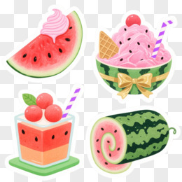 水彩熊猫西瓜大暑卡通手绘元素