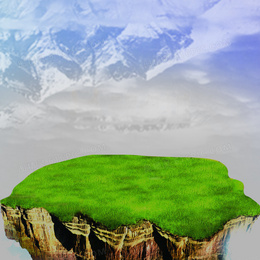 雪山漂浮的绿草地