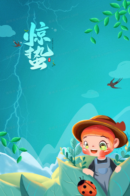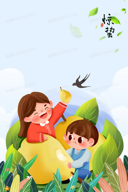 二十四节气传统习俗吃梨卡通惊蛰背景