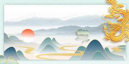 龙抬头中国风鎏金山水金龙背景