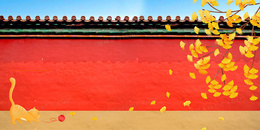 黄色可爱手绘卡通秋天植物落叶女孩创意背景