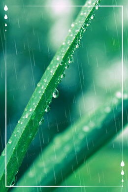 谷雨节气绿色植物雨水唯美摄影图合成背景
