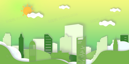 黄绿色文艺小清新剪纸风清晨城市背景图