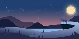 卡通麋鹿夜景手绘扁平背景