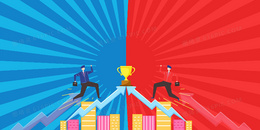红蓝对决扁平商务业绩冲刺背景