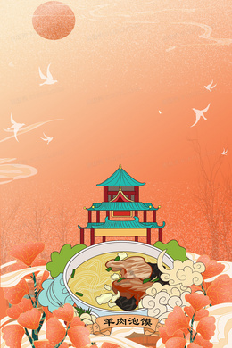 中国风陕西特色美食羊肉泡馍潮风背景