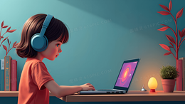 卡通听歌女孩背景图
