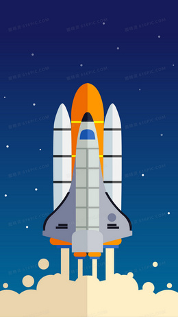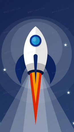 蓝色扁平卡通火箭PSD分层H5背景素材