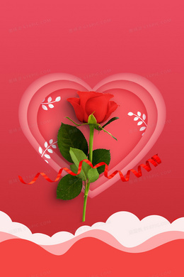 创意简约大气唯美红色鲜花玫瑰花朵情人节海报背景