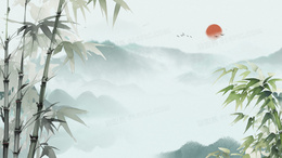 水墨山水竹叶清新中国风古建筑背景