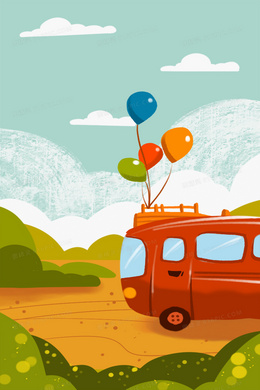 > 暖色夏日扁平山水田园手绘卡通插画背景