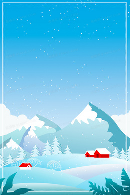 > 寒冷冬天雪人冰河雪屋雪景插画背景
