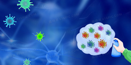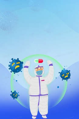 新冠肺炎卡通手绘蓝色背景