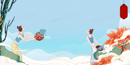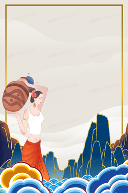 国潮中国风卡通手绘少数民族少女泼水节背景