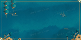 新中式宝蓝中国风大气灯笼祥云背景
