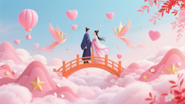粉蓝渐变梦幻爱心凤凰背景