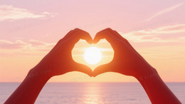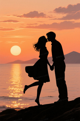 暖橙渐变日落海景LOVE剪影背景