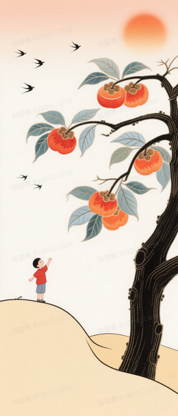 暖杏渐变东方刺绣丰收背景