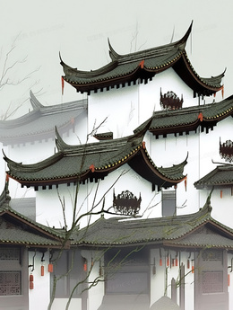> 中国仿古建筑楼阁插画