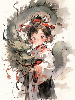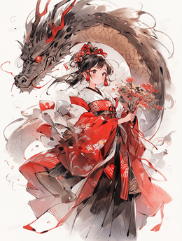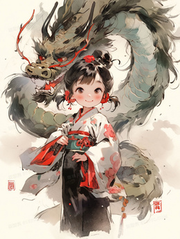 当前位置: 图精灵 > 背景图库 > 插画 > 一个中国风女孩和龙水墨风手绘插画