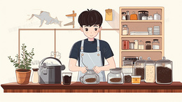 > 卡通人物咖啡店做咖啡餐饮下午茶插画