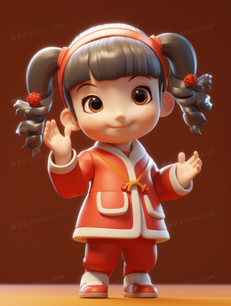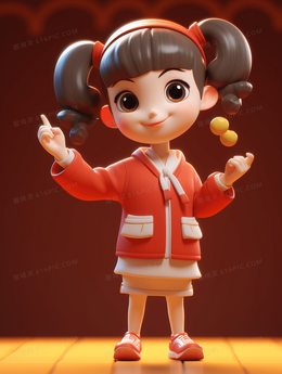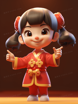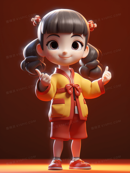 3D立体穿新衣的小姑娘插画