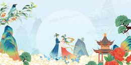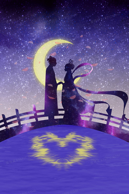 创意手绘卡通七夕牛郎织女鹊桥相会背景