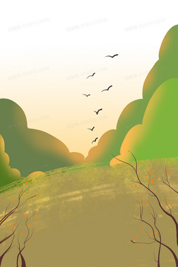 绿色文艺清新日落飞鸟背景