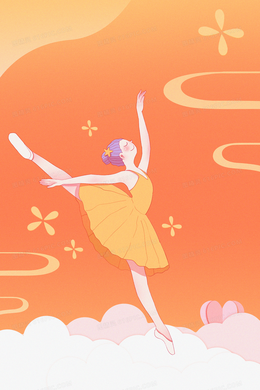 卡通橙色渐变唯美女孩跳舞背景