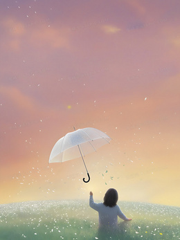 插画风格唯美治愈女孩背景