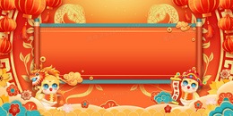 2025蛇年新年吉祥物卷轴中国风喜庆灯笼背景
