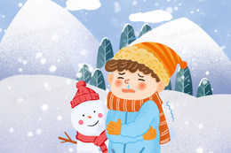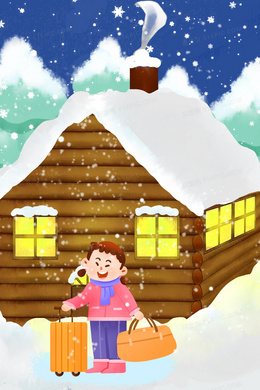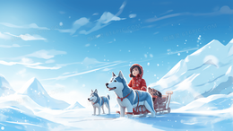 雪地上雪橇犬拉着雪橇上的小女孩插画