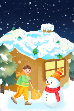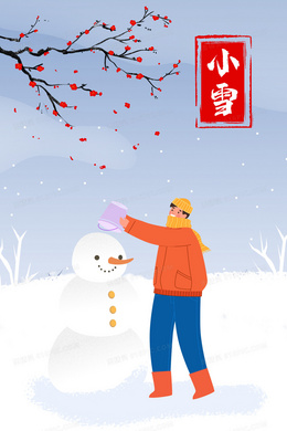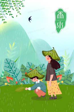 雨水节气男孩与女孩雨中带着荷叶帽插画