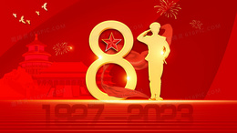 红色烫金军人敬礼建军节插画