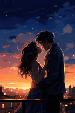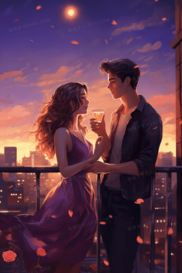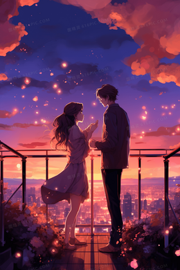 梦幻浪漫情侣七夕情人节约会插画