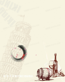 > 手绘红酒木桶背景